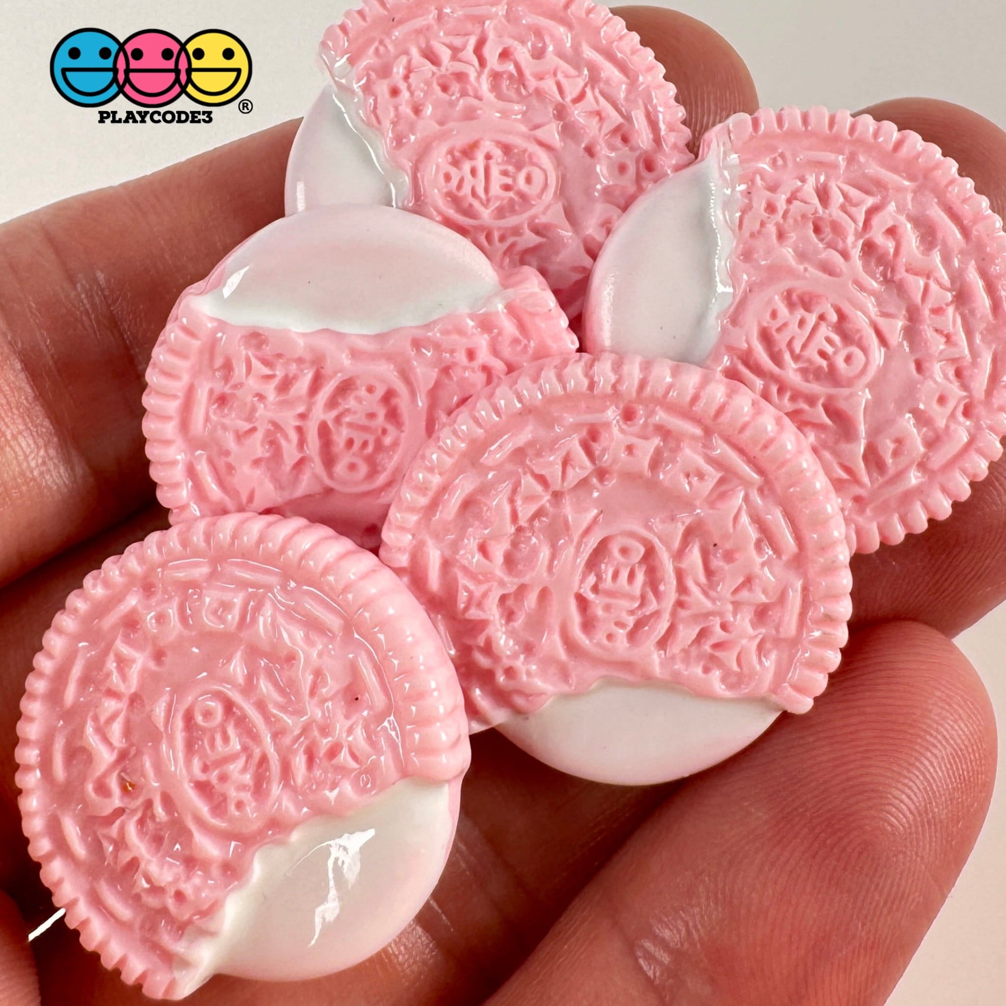 Pink Cookie Fake Food Mini Cookie and Cream Flatback Cabochons Decoden Charm 10 pcs